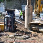 Actuellement les travaux avancent bien on y réalise les forages pour la géothermie à 150m de profondeur plus le terrassement et on y aperçoit déjà les socles pour les cages d’ascenseurs…Actuellement réalisation des pieux FRANKI avec une BAUER BG 20 H. Préparation pour les futures dalles du bâtiment.. La grue tour à été montée ce vendredi 5-08-16. Préparation et montage des premiers voiles de béton..Mises en place des premiers prés-murs et coulage de voile en béton..Rez de chaussée terminé et les maçonneries ont débuter. Le 1 étage est en cours de finition également. Les prés-mur sont en place et remplis. Les poutres vont être placées ce lundi….Coulage des colonnes placement des prés dalles. les maçonneries avance très bien.. Réalisation d’un escalier tournant et début du second bâtiment