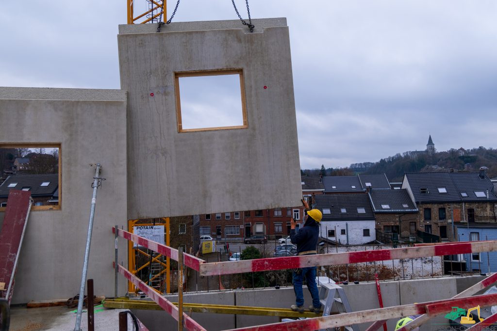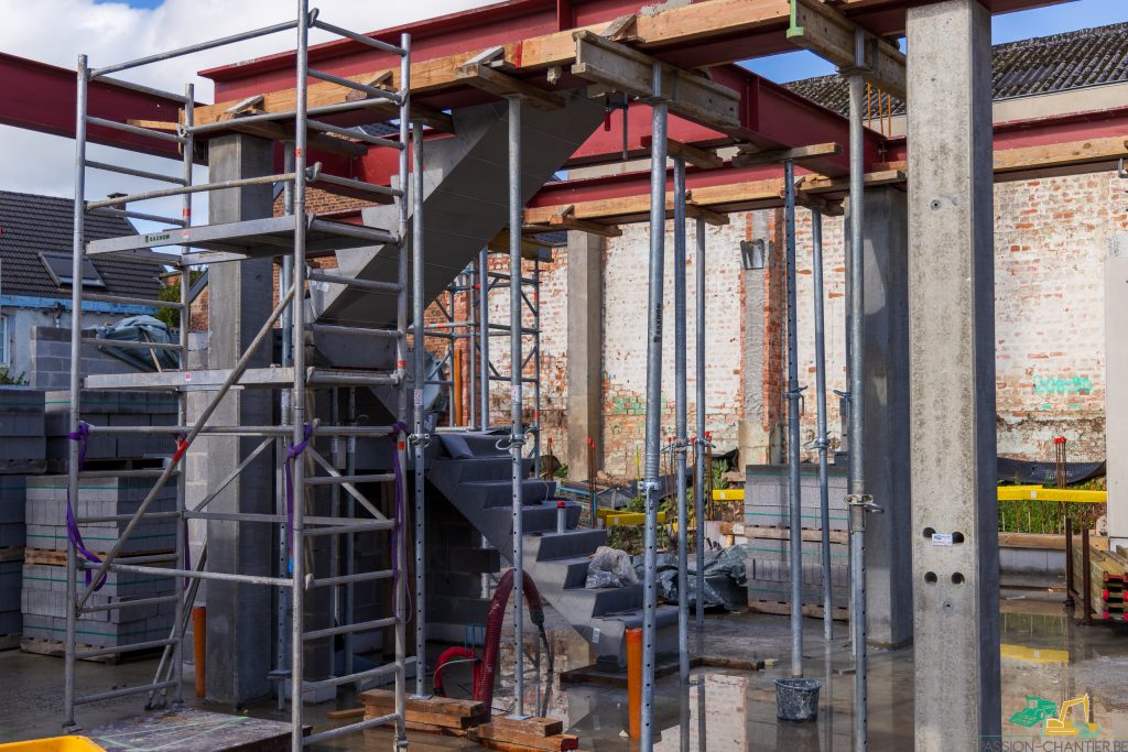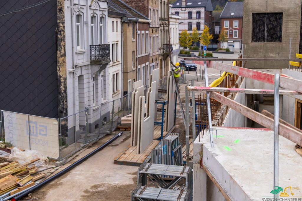 Démolition réalisée par DEMOTECH Construction par G.MOURY Démolition des fondation par DEMOTECH avec 1 CAT 323 Montage de la première grue tour ce 19-06-2025 Montage de la 2 grue tout ce 11-07-2025